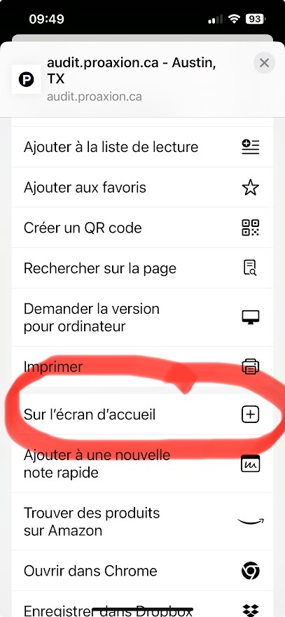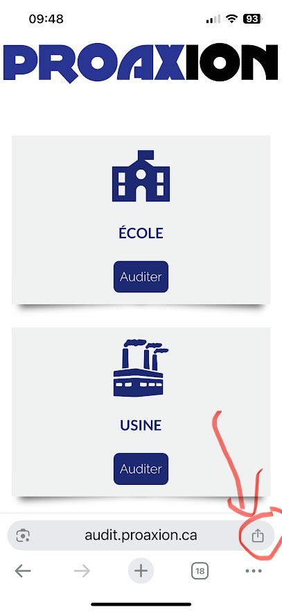 ÉTAPE 1 : ouvrir le site web sur le téléphone en accédant à https://audit.proaxion.ca